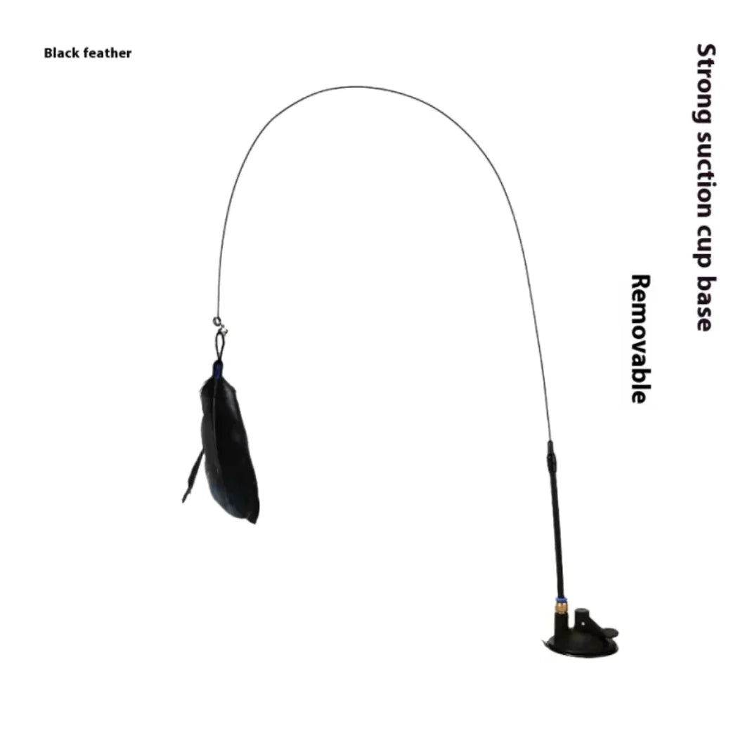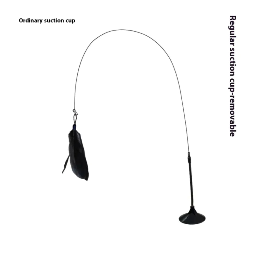 An interactive cat teaser featuring a suction cup base, long brush holder, and feather attachment with a bell. Designed for self-play, it keeps cats entertained and active while being durable and bite-resistant. Perfect for stimulating your pet’s hunting instincts and providing hours of fun.